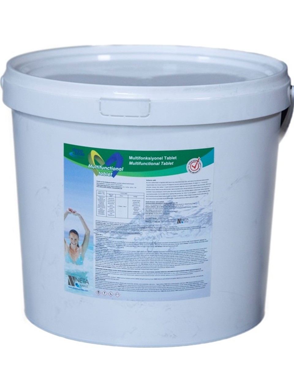 Deep Blue Üçü Bir Arada Multi Tablet   Yosun Önleyici, Çöktürücü ve %90 Tablet Klor İçeren 200 gr’lık Tabletler Halindedir.   Dezenfeksiyonu, Yosun Oluşumunun Engellenmesini ve Partiküllerin Dibe Çökmesini Sağlar.   Kullanımı: Her 100 m³ havuz suyu için 4-5 adet Deep Blue Multifonksionel Tablet Kullanılmalıdır.